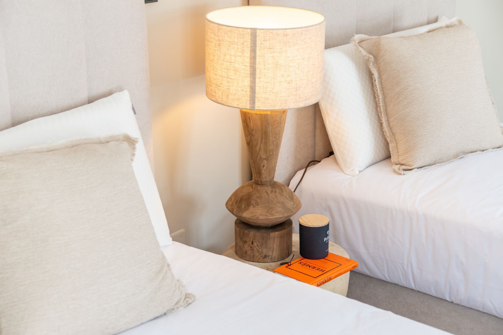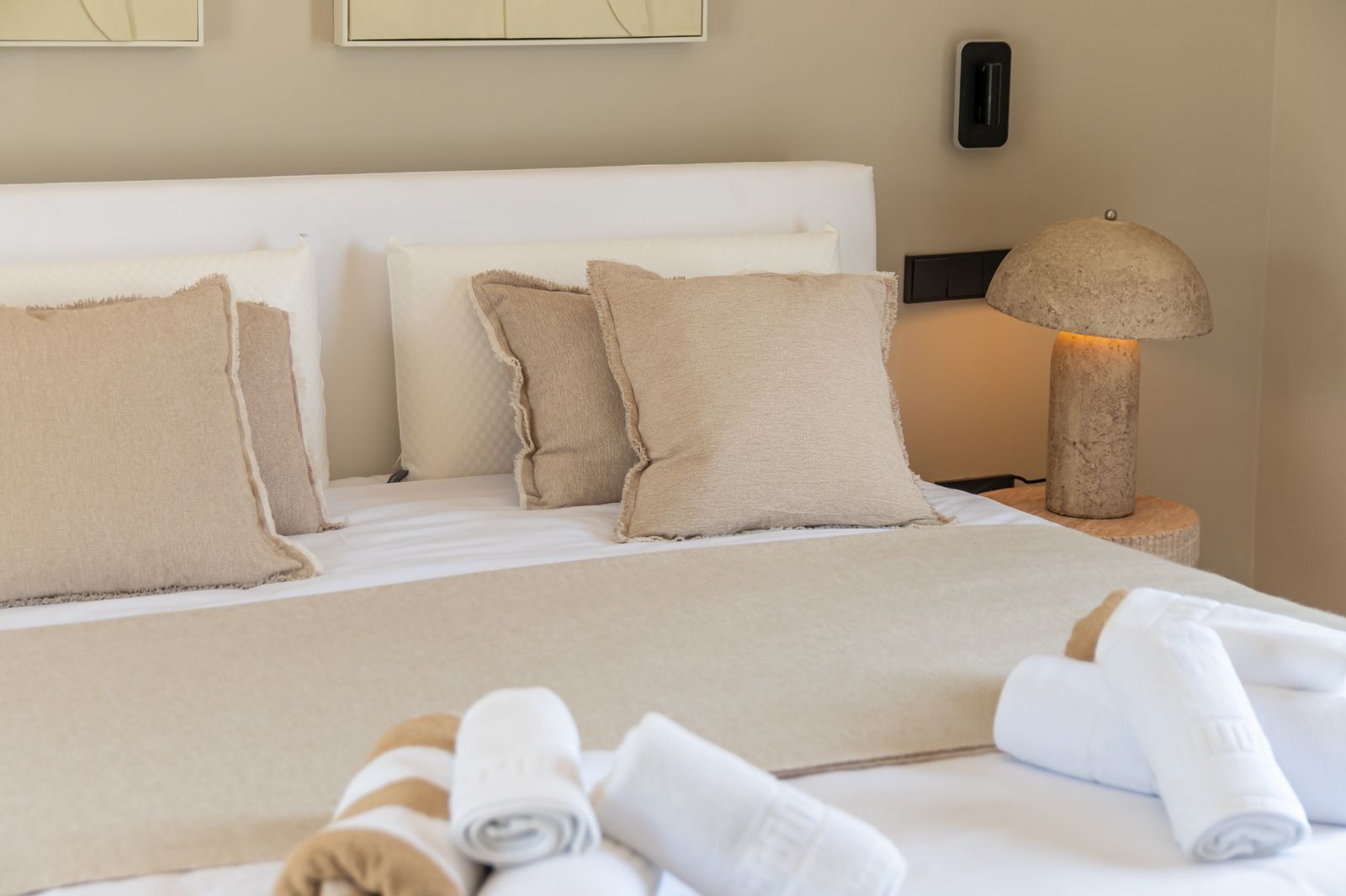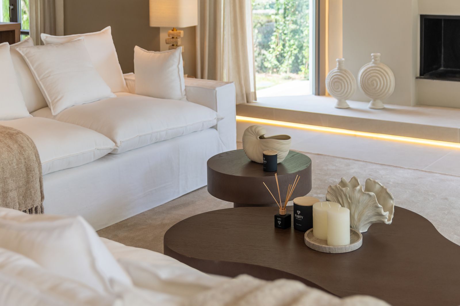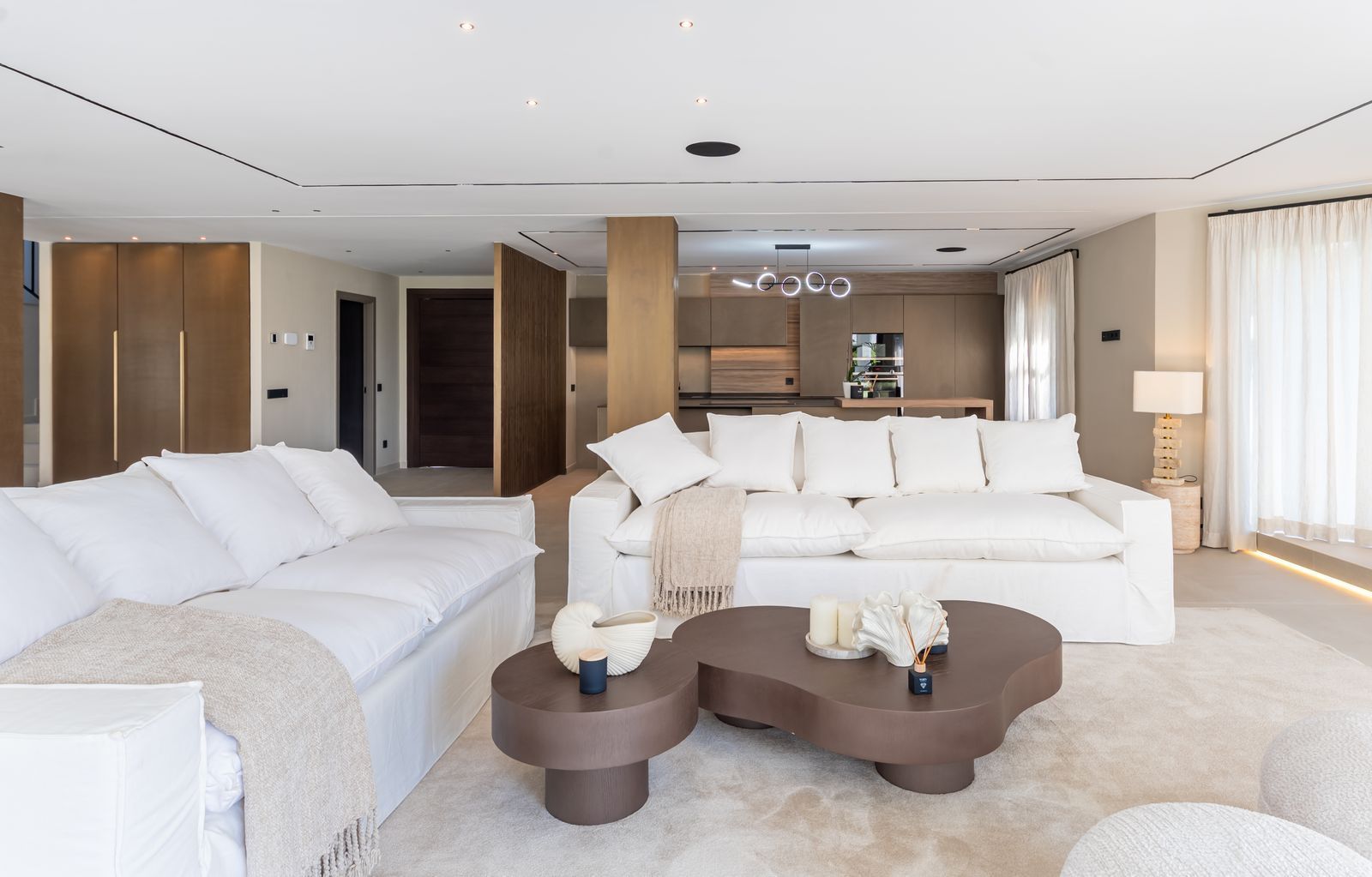Inside, the atmosphere is warm and inviting, with modern finishes softened by natural wood accents. The open-plan kitchen and dining area flow seamlessly, with the kitchen fitted with high-quality Siemens appliances for those who love to cook. The living space opens directly onto a charming chill-out terrace, perfect for unwinding with friends or enjoying a quiet evening. Every corner of the home has been designed with comfort and hospitality in mind. Interior & exterior furniture by KOA Interior.