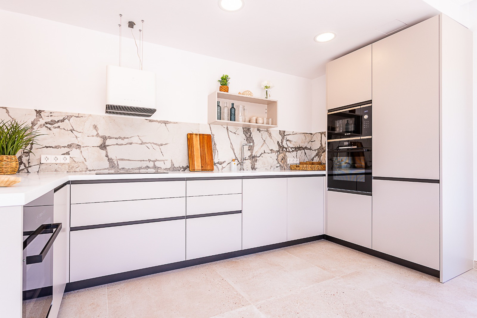The penthouse has been fully refurbished to a high standard, including new flooring, updated plumbing, and modern electrical systems. The contemporary kitchen, designed and installed by Porcelanosa, is equipped with premium Bosch appliances.