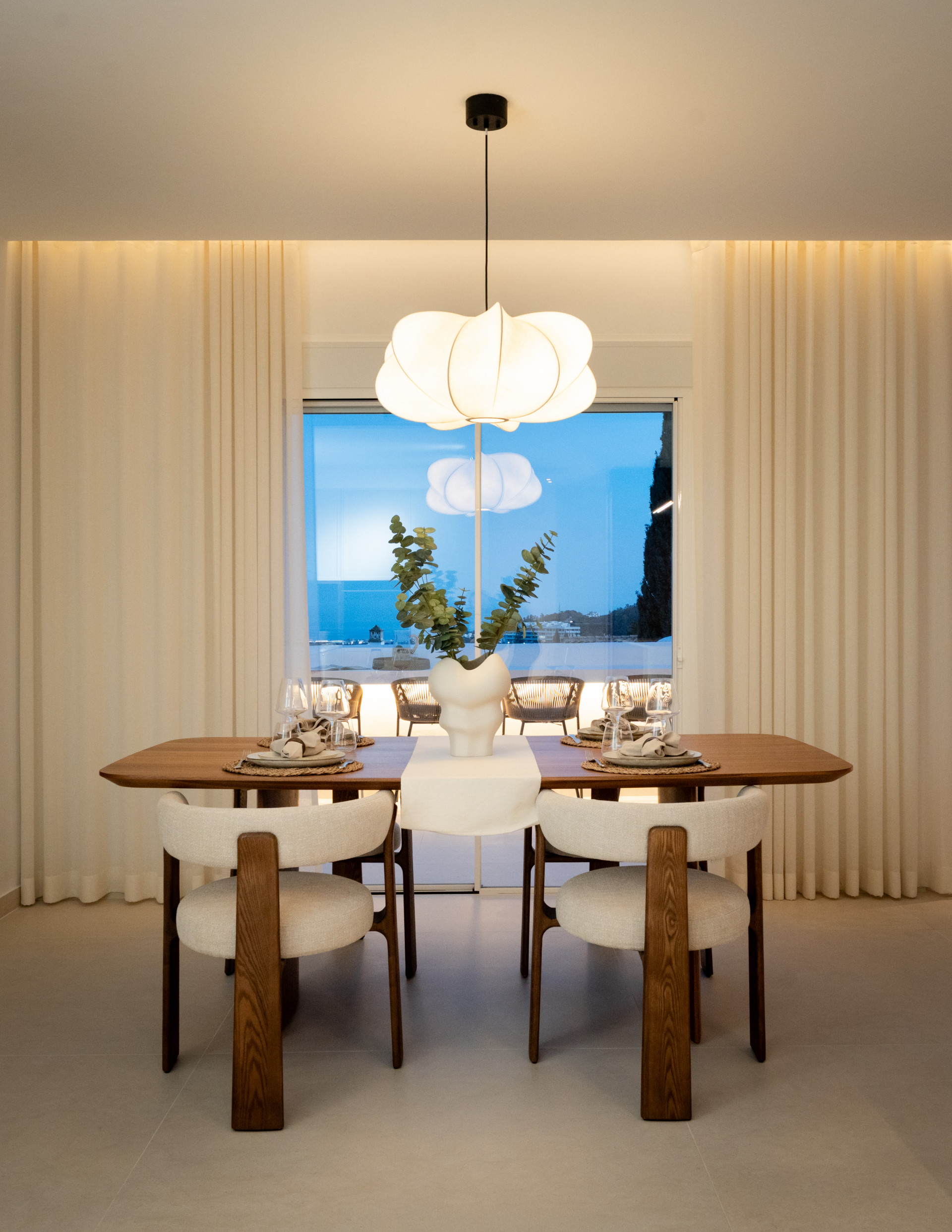 Upstairs, two additional en-suite bedrooms each have direct access to private terraces. The principal suite is particularly impressive, featuring a walk-in wardrobe and a generous outdoor space complete with a plunge pool, outdoor shower, and uninterrupted sea views—an ideal setting to relax and unwind.