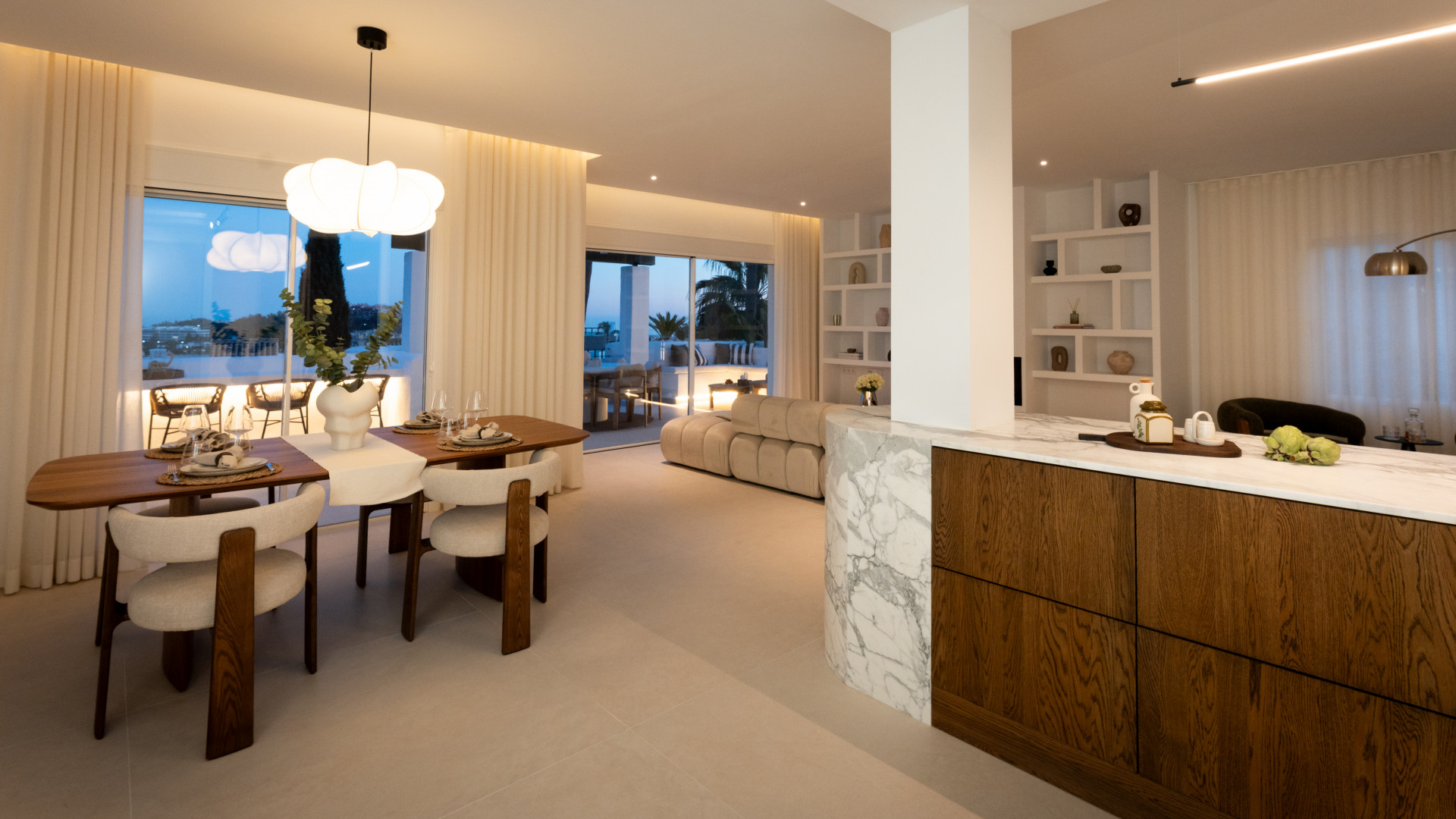 This beautifully renovated duplex penthouse has been finished to an exceptional standard, offering a refined blend of contemporary design and comfort, along with stunning panoramic views of the Mediterranean.