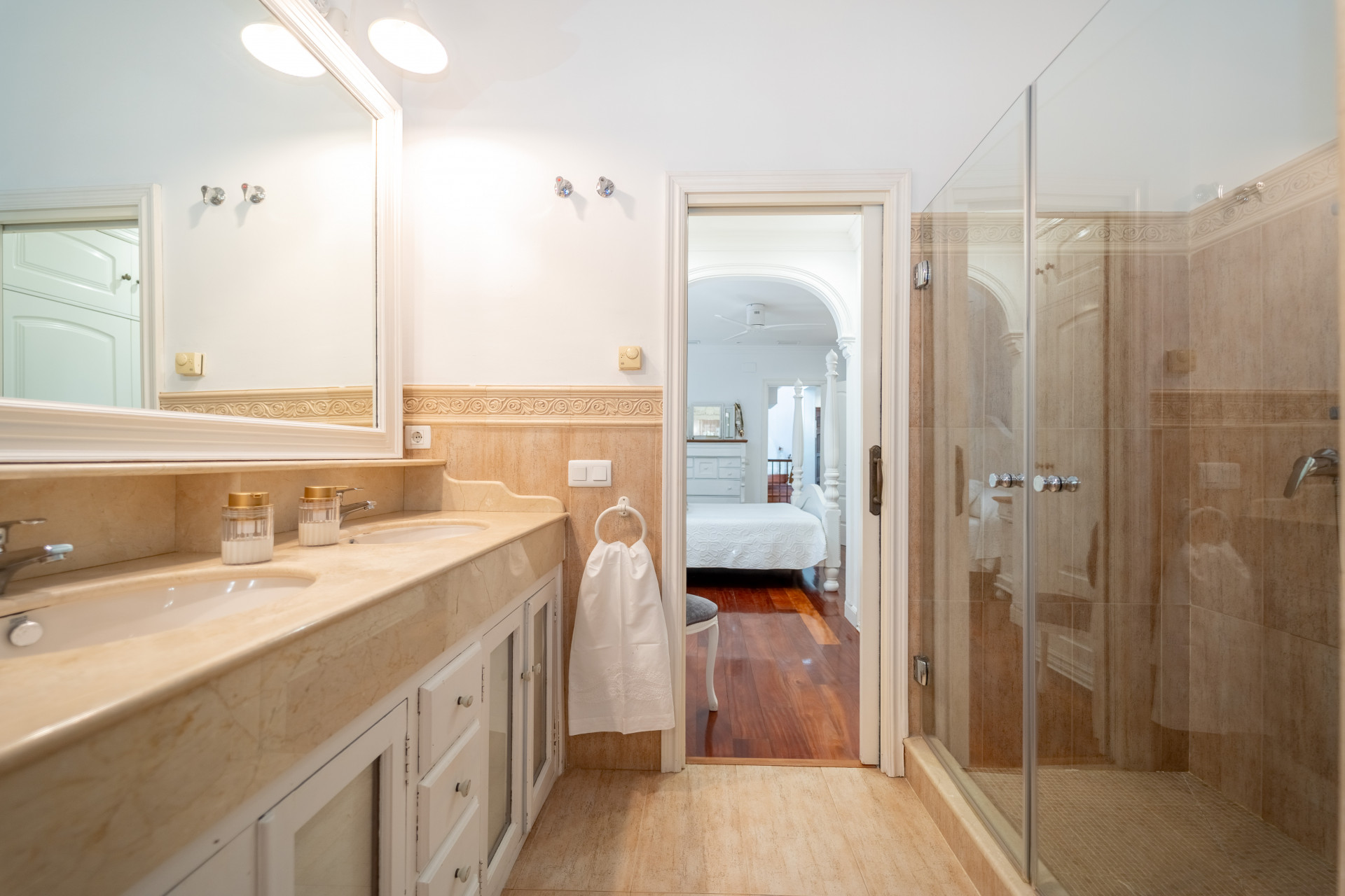 Upstairs, you will find three additional generously sized bedrooms, one of which has its own en-suite bathroom, as well as a separate full bathroom for the remaining two bedrooms. All rooms are bright and benefit from private balconies.